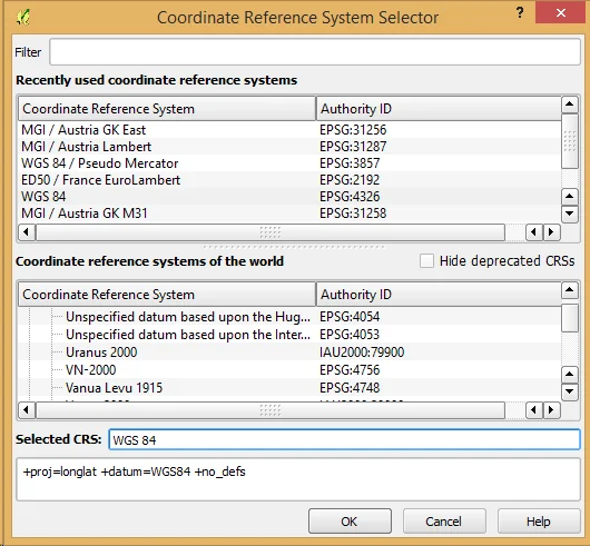 All dialogs now use a consistent projection selection widget, which allows for quickly selecting from recently used and standard project/QGIS projections.