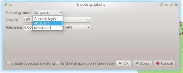 There is a new snapping mode : snap to all layers which makes it quick to enable snapping between all layers. Also the underlying snapping architecture of QGIS has been overhauled making snapping much faster on large projects and improving the precision with which snapping takes place. ​There’s also less confusion with snapping tolerances being to map units or layer units, so those anticipated 1 metre tolerances don’t become 1 degree tolerances without you knowing.