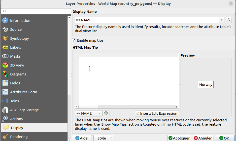 Additionally, we added a new “Insert/Edit Expression” button to the vector layer properties MapTip tab.