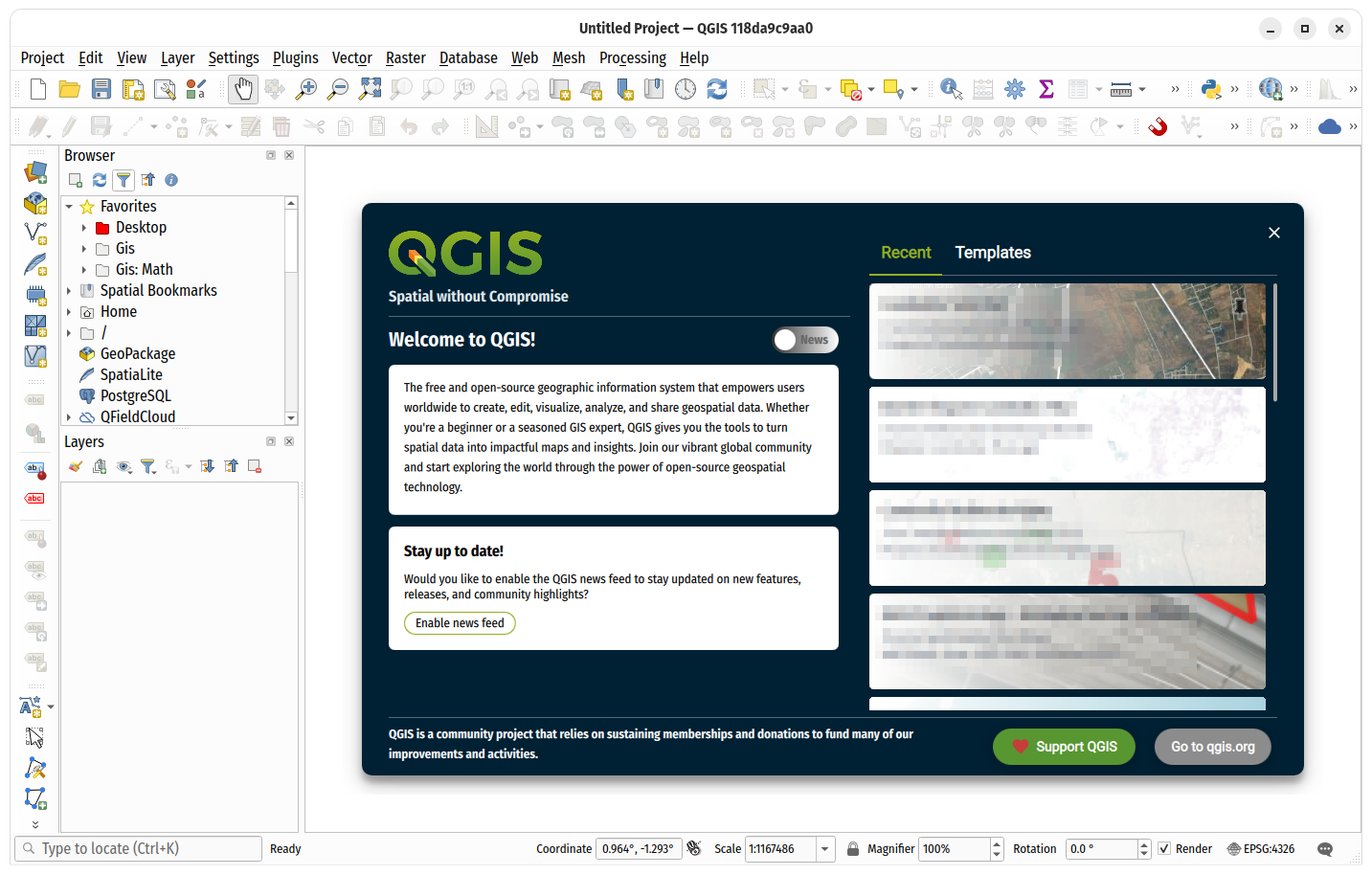 QGIS 4.0 features a shiny new welcome page, with an extensible design for an enhanced user experience in line with QEP 347.