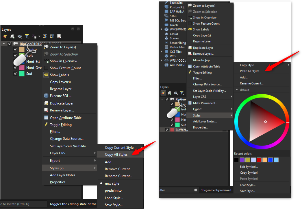 New grouped categories shortcuts have been added to the layer tree menu’s copy/paste style sub-menu. This allows users to rapidly copy/paste a set of grouped categories across layers.