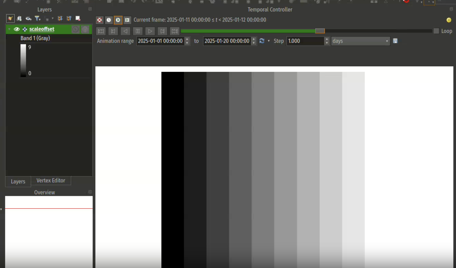 A new accumulate pixels option has been added that is available when a raster layer temporal mode is set to represent temporal values. This mimics the vector layer counterpart, where features can accumulate over time when a feature’s temporal state is represented by a single date/time field.