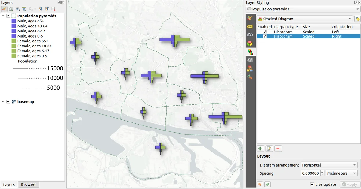 • When using the distance-based placement or labels, the distances are calculated using 2D only, Cartesian calculations based on the original layer CRS. This could potentially be extended in future to expose options for 3D Cartesian distances, or ellipsoidal distance calculations.
