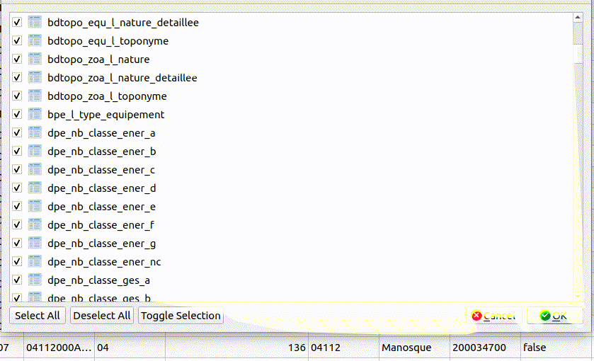 The new Toggle Selection button (as well as the Deselect or Select All buttons) will only appear when there are more than 5 fields in a layer.