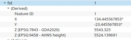 When a vector layer and the project have vertical datums present, and they differ, then include the transformed Z value for the identified features in the project’s datum too.