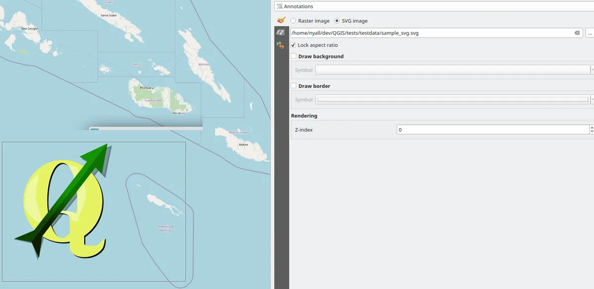 We improved the workflow for those projects with older annotation items. In previous QGIS versions, older annotation items (text, html, svg and form) had not been ported over to the new framework therefore impacting workflows. In 3.40, we have targeted the higher priority items, text and svg, so now the framework has been updated and the missing functionality has been added. Now, when loading old projects, any of the old SVG and text annotations will automatically be converted (silently) to the newer picture and rectangular text annotation item types.