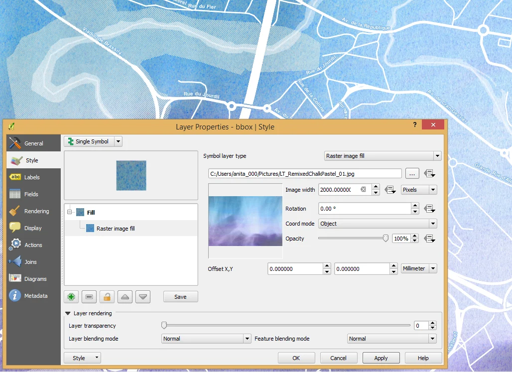 This new symbol layer type allows for filling polygons with a (tiled) raster image.