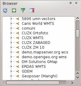 In the QGIS Browser items are now expanded in their own threads, speeding up the load time of the browser and making the browser more responsive. Navigating PostGIS sources is now much faster in the browser. The animated snapshot to the right (click image to see the animation) shows the loading of two slow WMS servers in parallel . The browser's state (tree expansion) is restored on startup.
