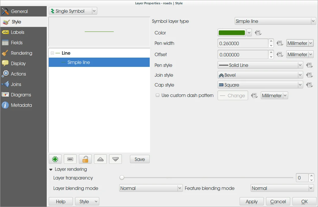 The user interface for data defined symbology settings has been improved - moving the data defined option next to each data definable property (in keeping with other parts of QGIS such as the labeling properties). Also many new properties have been made data definable for symbology. This user interface improvement also provides a way to immediately see if a data defined override is defined as well as easier access to the data-defined settings.